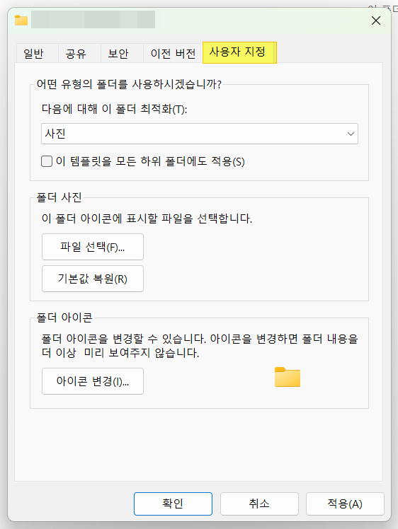 1. 해당 폴더 내에서 마우스 우클릭하고 최하단에 있는 "속성" 클릭
